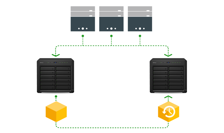 對(duì)于所有企業(yè)而言,提供不中斷的服務(wù)是非常重要的目標(biāo)。DS3615xs 提供 Synology High Availability (SHA) 技術(shù),其連接了主動(dòng)與被動(dòng)服務(wù)器,前者的所有數(shù)據(jù)皆鏡射至后者,當(dāng)主動(dòng)服務(wù)器出現(xiàn)錯(cuò)誤時(shí),被動(dòng)服務(wù)器馬上取而代之。共享文件夾同步可將數(shù)據(jù)實(shí)時(shí)復(fù)制至另一臺(tái)遠(yuǎn)程的 Synology NAS,在復(fù)原時(shí)間目標(biāo) (Recovery Time Objective, RTO) 內(nèi)回復(fù)企業(yè)因服務(wù)器故障而中斷的服務(wù)。此外,通過多網(wǎng)絡(luò)端口鏈接,DS3615xs 在單一網(wǎng)絡(luò)功能異常時(shí),也能提供備援機(jī)制。