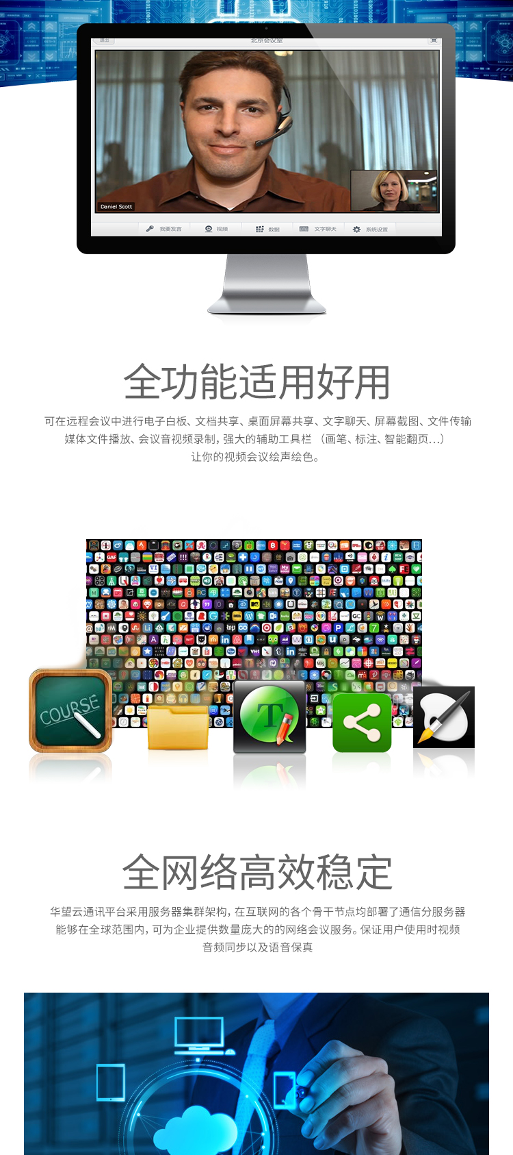 屏幕等多種媒體方式的遠(yuǎn)程視訊服務(wù)。